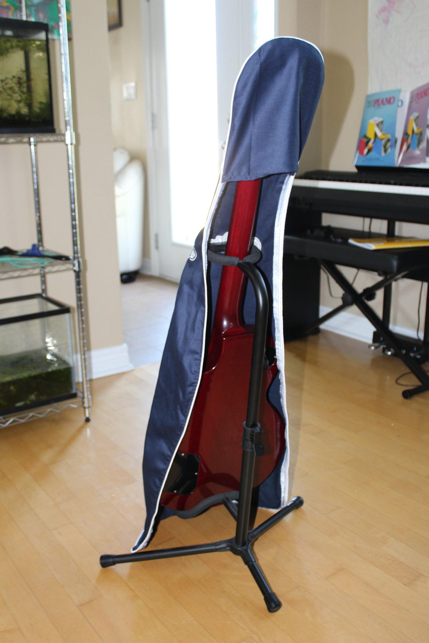 The Penguin covering my favourite stage guitar, a 1986 SG 400 Special. You can see the shape being refined in this next version of the prototype with the first embroidery.